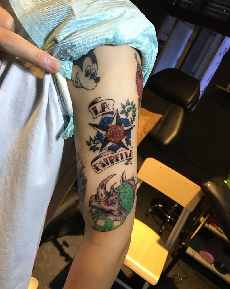 • T家庭图,一家四口生日纪念!纹身图片_手臂纹身图案