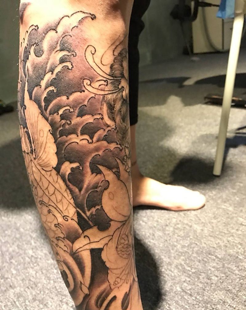 • T网红王老大花腿龙纹身图片_腿部新传统纹身图案