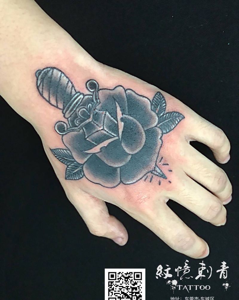 • 手背潮流时尚的玫瑰花眼睛纹身图案