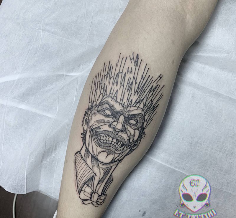 当前位置: 首页 >广东省东莞市纹身店-ET TATTOO纹身图案>线条小丑纹身图片_腿部脚部点刺纹身图案