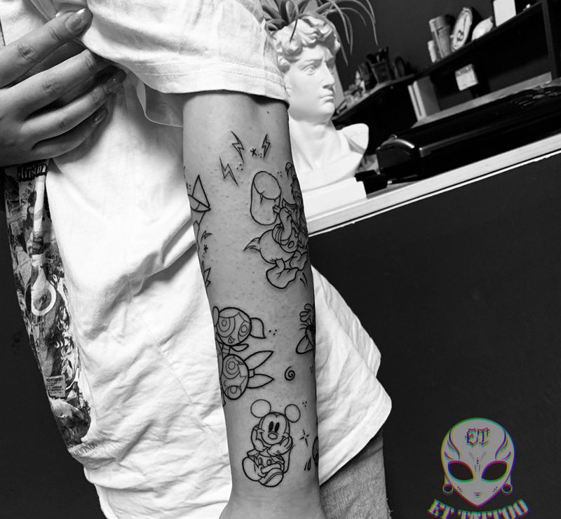 当前位置: 首页 >广东省东莞市纹身店-ET TATTOO纹身图案>迪士尼拼接纹身图片_手臂手部Old School纹身图案