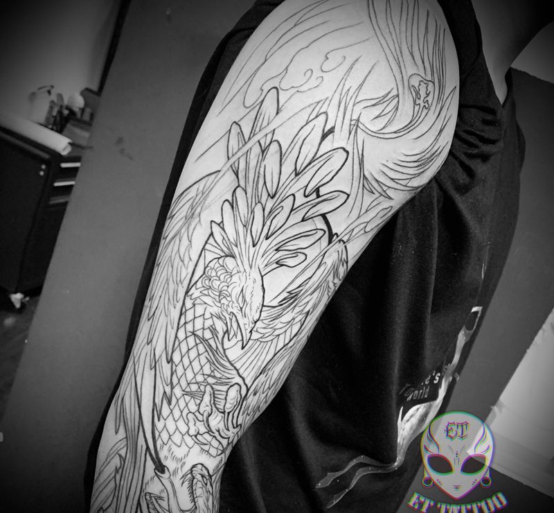 当前位置: 首页 >广东省东莞市纹身店-ET TATTOO纹身图案>凤凰花臂纹身图片_手部手臂新传统纹身图案