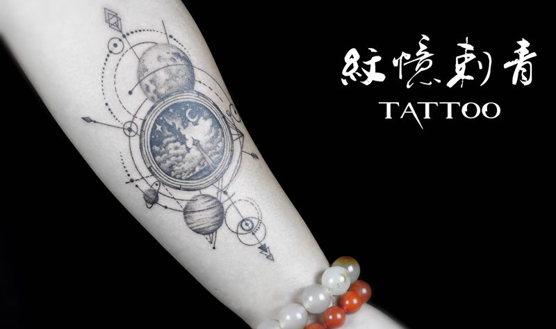 当前位置: 首页 >广东省东莞市纹身店-广东紋憶刺青纹身图案>几何星空纹身图片_手臂点刺纹身图案