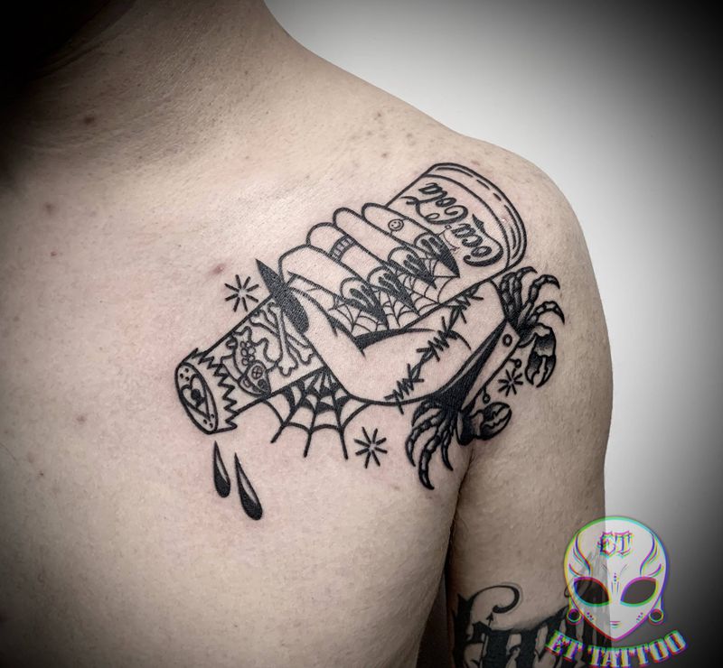 当前位置: 首页 >广东省东莞市纹身店-ET TATTOO纹身图案>可口可乐纹身图片_胸部肩部Old School纹身图案