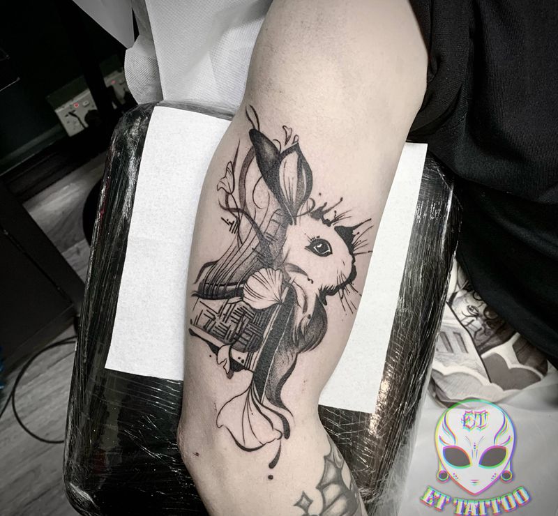 当前位置: 首页 >广东省东莞市纹身店-ET TATTOO纹身图案>古筝兔子纹身图片_手部手臂水墨纹身图案
