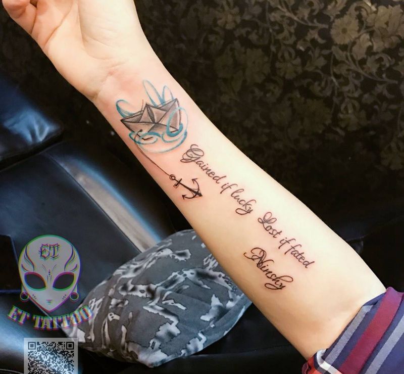 当前位置: 首页 >广东省东莞市纹身店-ET TATTOO纹身图案>纸船+英文纹身图片