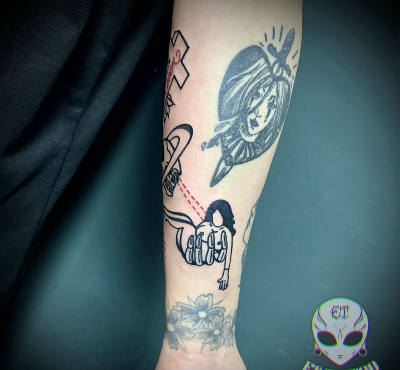 当前位置: 首页 >广东省东莞市纹身店-ET TATTOO纹身图案>拼接暗黑纹身图片_手部手臂Old School纹身图案