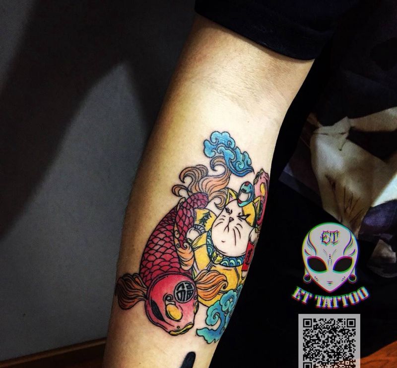 • T招财猫纹身图片