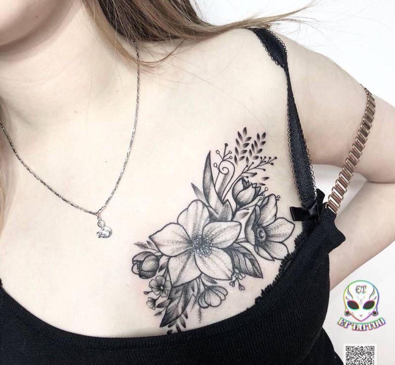 • 女性大花胸纹身_43张霸气漂亮的女性大花胸纹身图案作品