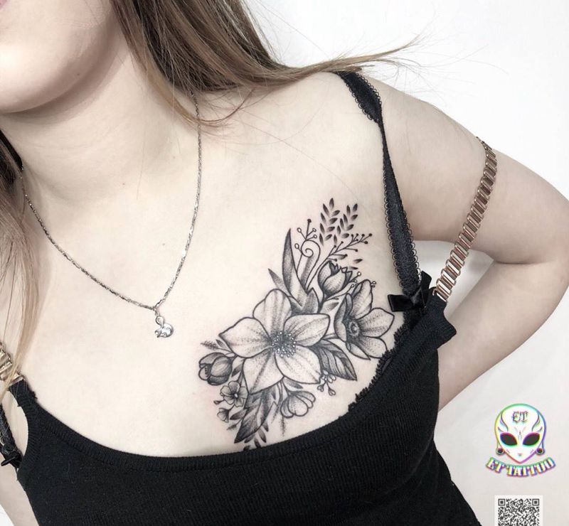 • 女性大花胸纹身_43张霸气漂亮的女性大花胸纹身图案作品