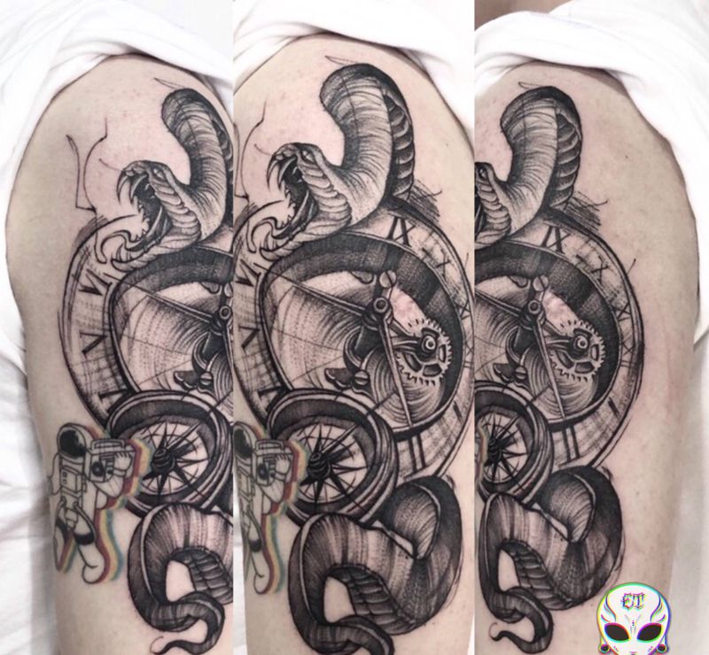当前位置: 首页 >广东省东莞市纹身店-ET TATTOO纹身图案>素描蛇➕时钟➕指南针纹身图片_手臂纹身图案