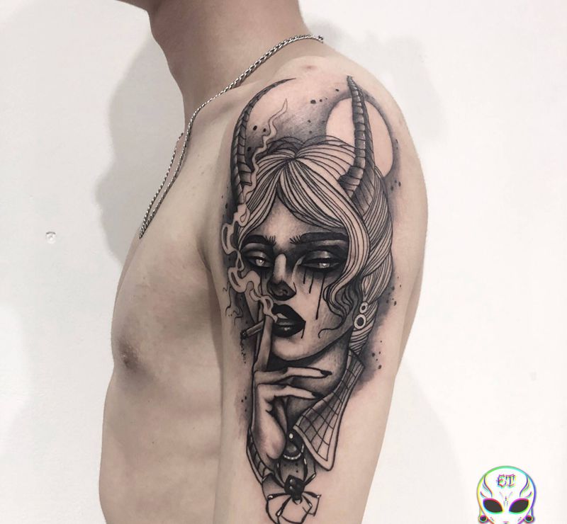 当前位置: 首页 >广东省东莞市纹身店-ET TATTOO纹身图案>抽烟女郎纹身图片_手臂纹身图案