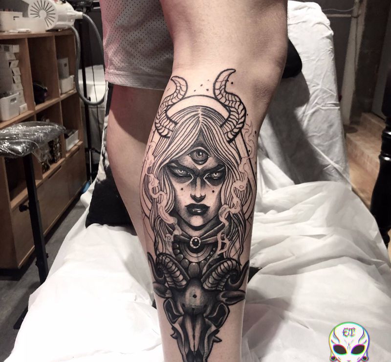 • T包小腿吹火男+阿多福纹身图片_腿部老传统新传统吹火男阿