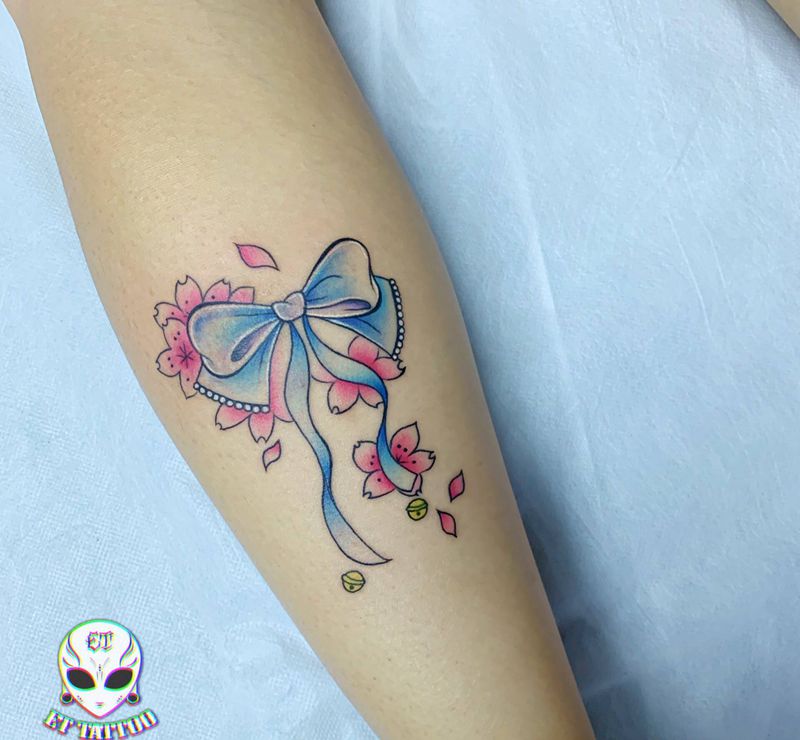 当前位置: 首页 >广东省东莞市纹身店-ET TATTOO纹身图案>蝴蝶结纹身图片_腿部水彩纹身图案