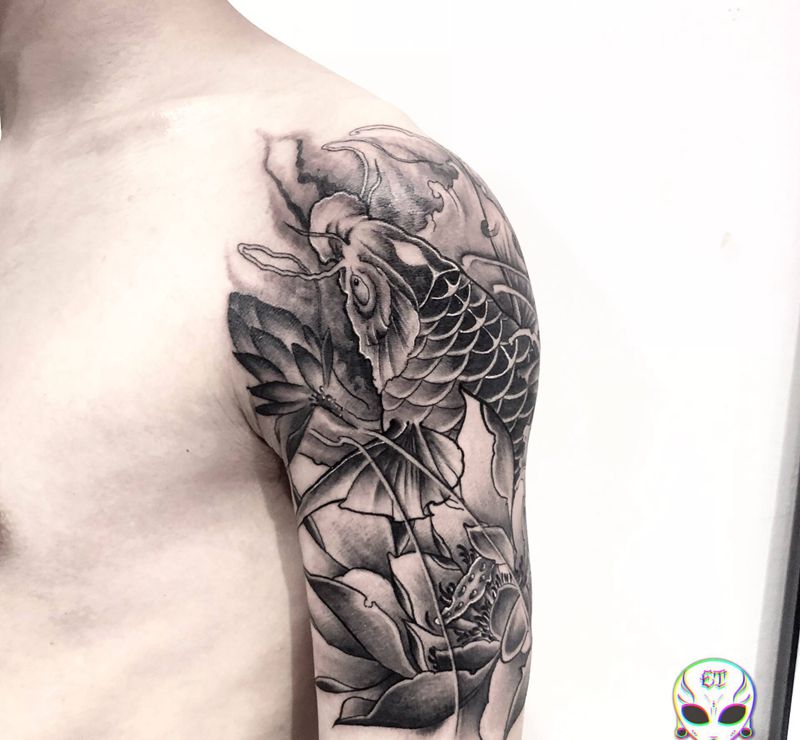 当前位置: 首页 >广东省东莞市纹身店-ET TATTOO纹身图案>新传统鲤鱼纹身图片_手臂新传统纹身图案