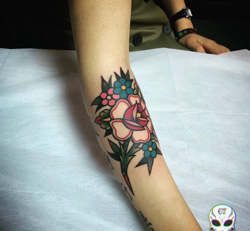 当前位置: 首页 >广东省东莞市纹身店-ET TATTOO纹身图案>oldschool玫瑰纹身图片_手臂Old School纹身图案