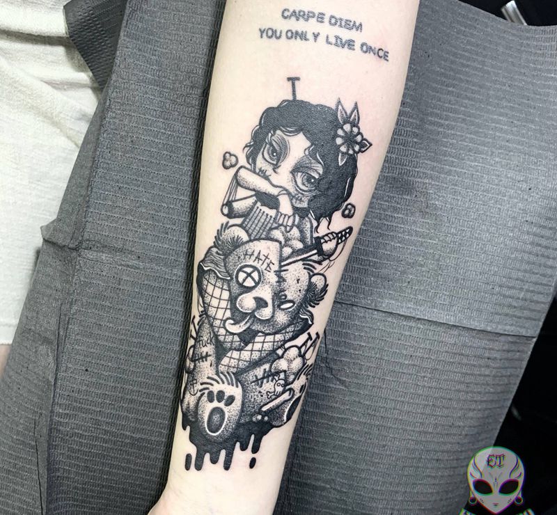 当前位置: 首页 >广东省东莞市纹身店-ET TATTOO纹身图案>点刺木偶与熊纹身图片_手臂点刺纹身图案