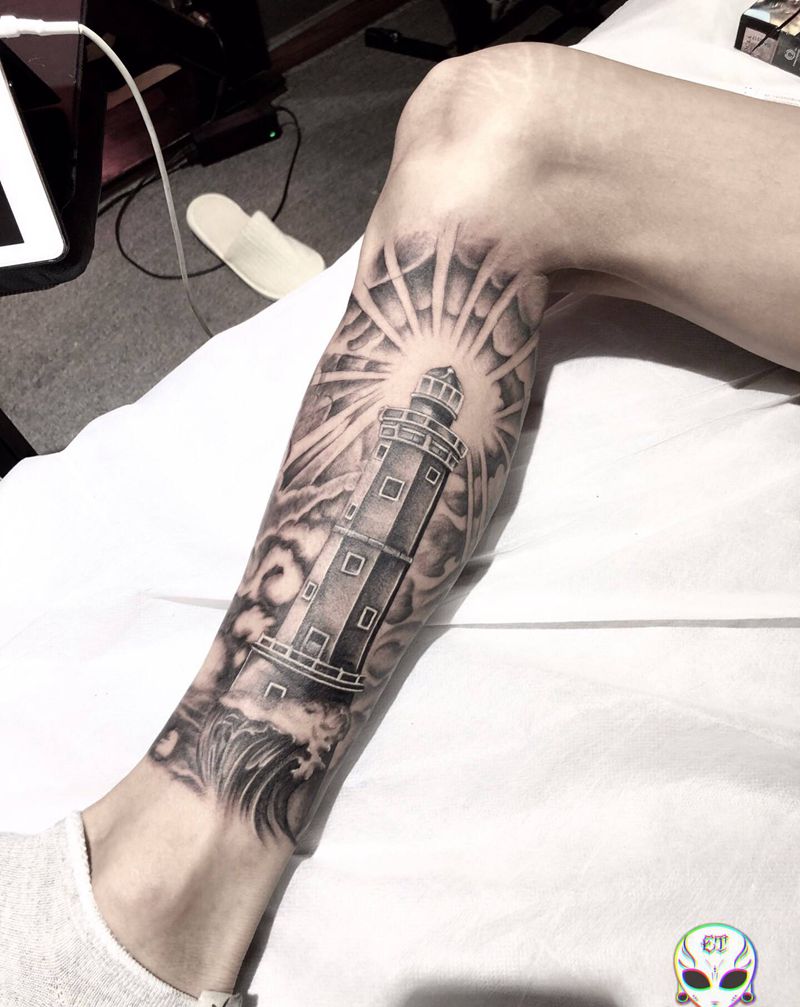 当前位置: 首页 >广东省东莞市纹身店-ET TATTOO纹身图案>灯塔纹身图片_腿部纹身图案