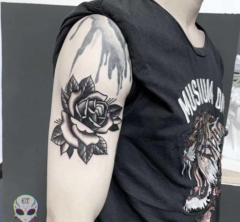当前位置: 首页 >广东省东莞市纹身店-ET TATTOO纹身图案>school玫瑰纹身图片_手臂Old School纹身图案