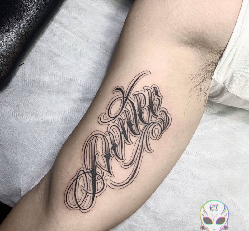 当前位置: 首页 >广东省东莞市纹身店-ET TATTOO纹身图案>花体纹身图片_手部手臂花体字纹身图案