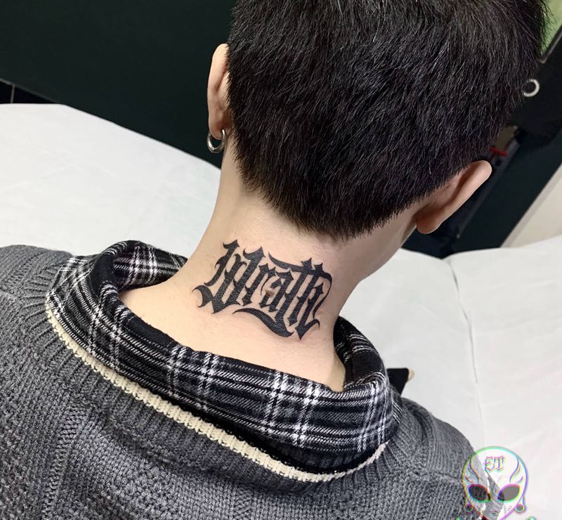 当前位置: 首页 >广东省东莞市纹身店-ET TATTOO纹身图案>小花体纹身图片_颈部花体字纹身图案