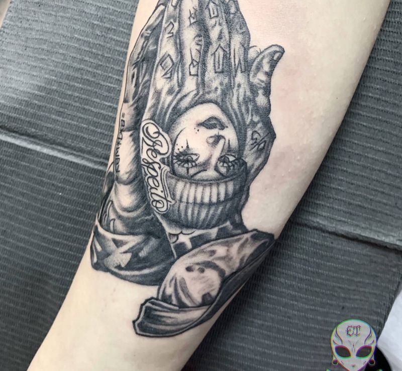 当前位置: 首页 >广东省东莞市纹身店-ET TATTOO纹身图案>祈祷之手纹身图片_手部手臂欧美写实纹身图案