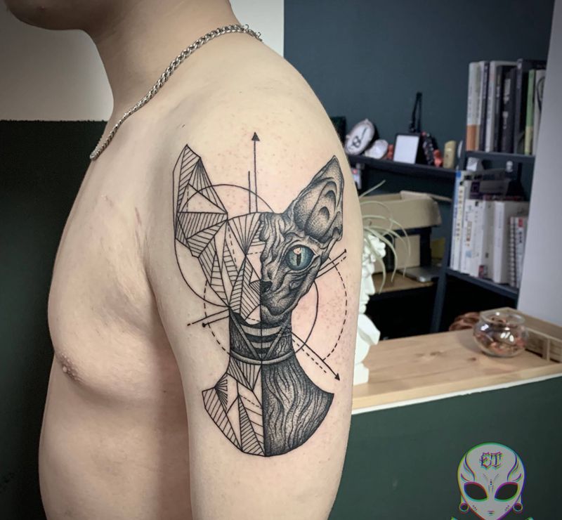 当前位置: 首页 >广东省东莞市纹身店-ET TATTOO纹身图案>几何无毛猫纹身图片_手部手臂点刺几何纹身图案