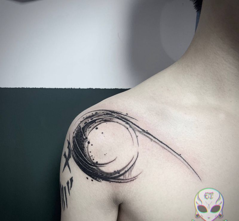 当前位置: 首页 >广东省东莞市纹身店-ET TATTOO纹身图案>暗黑月亮纹身图片_手臂肩部点刺纹身图案