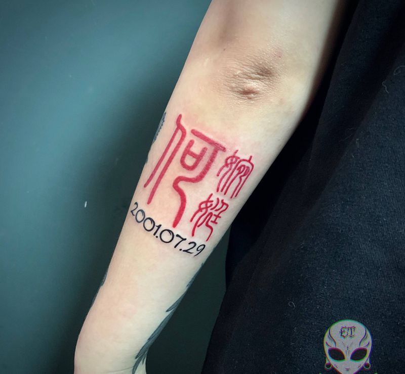 当前位置: 首页 >广东省东莞市纹身店-ET TATTOO纹身图案>篆体一则纹身图片_手臂手部纹身图案