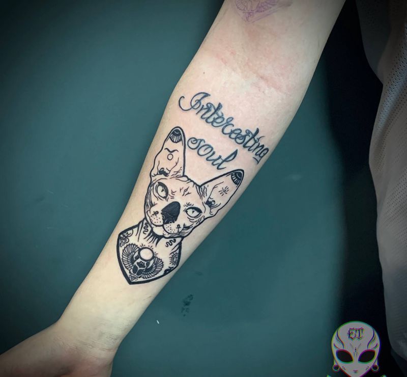 当前位置: 首页 >广东省东莞市纹身店-ET TATTOO纹身图案>无毛猫纹身图片_手臂手部纹身图案