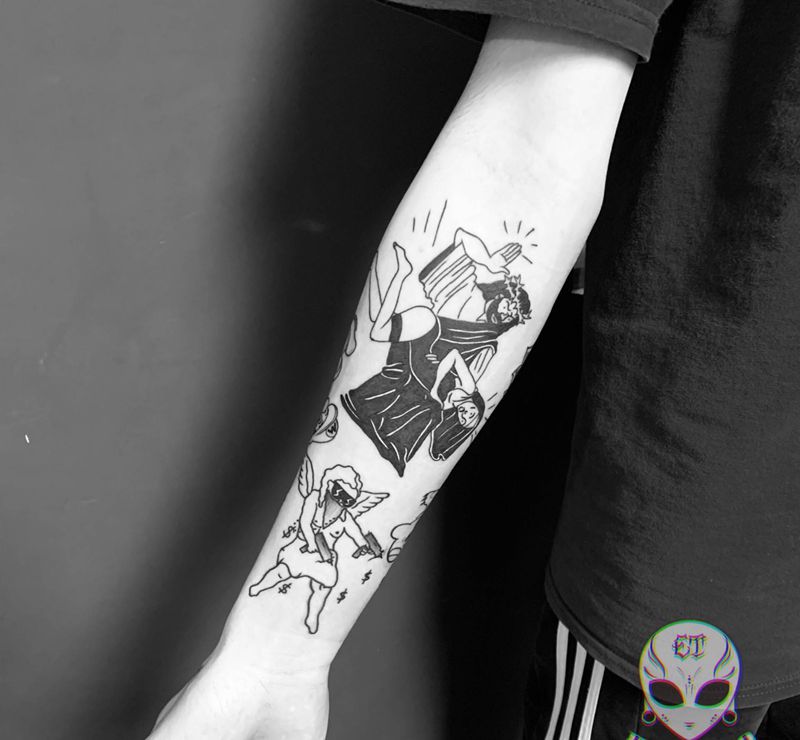 当前位置: 首页 >广东省东莞市纹身店-ET TATTOO纹身图案>黑灰拼接手臂纹身图片_手臂手部Old School纹身图案