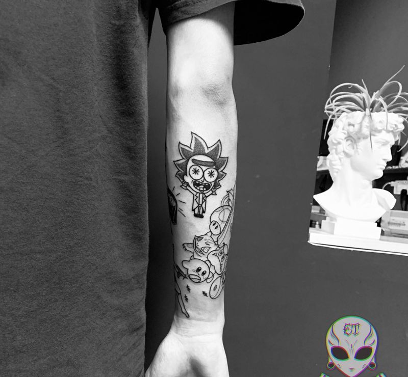 当前位置: 首页 >广东省东莞市纹身店-ET TATTOO纹身图案>黑灰拼接手臂纹身图片_手臂手部Old School纹身图案