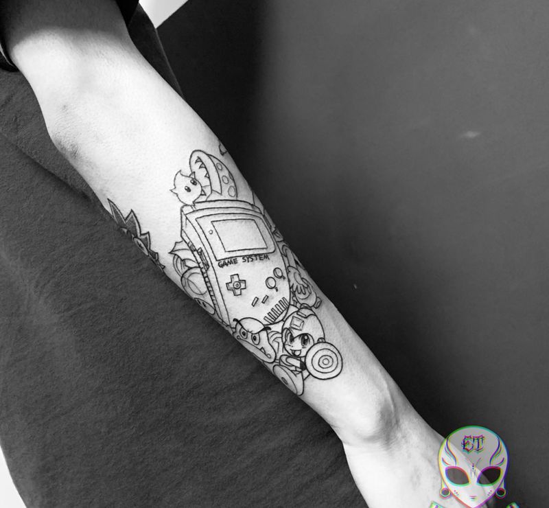 当前位置: 首页 >广东省东莞市纹身店-ET TATTOO纹身图案>黑灰拼接手臂纹身图片_手臂手部Old School纹身图案