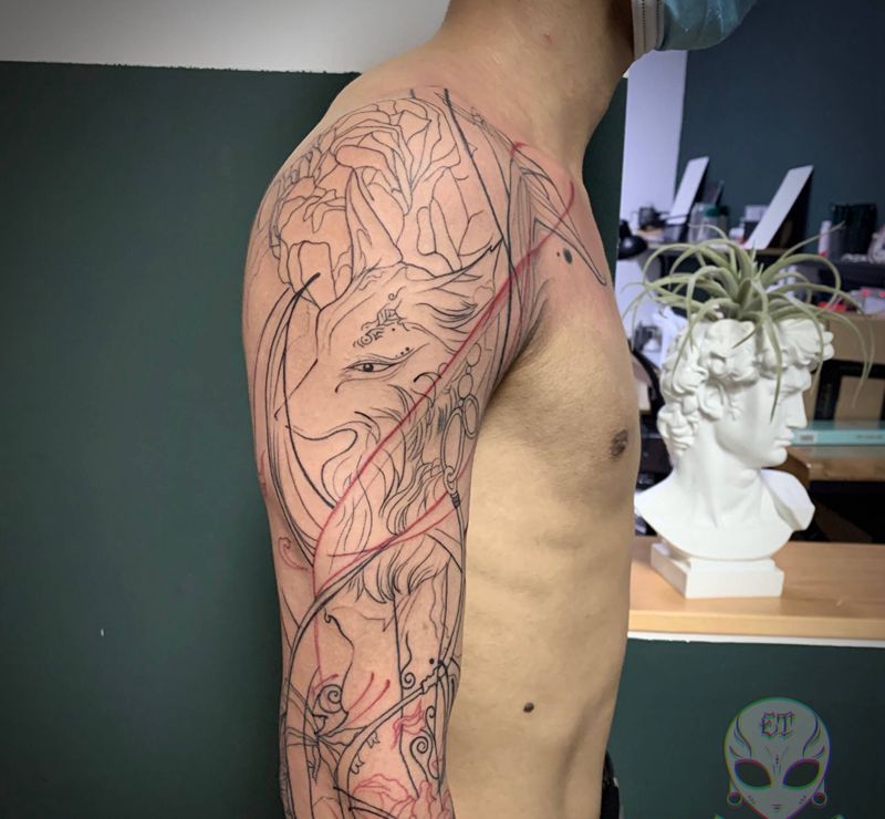当前位置: 首页 >广东省东莞市纹身店-ET TATTOO纹身图案>七分臂线条一则纹身图片_手臂手部纹身图案