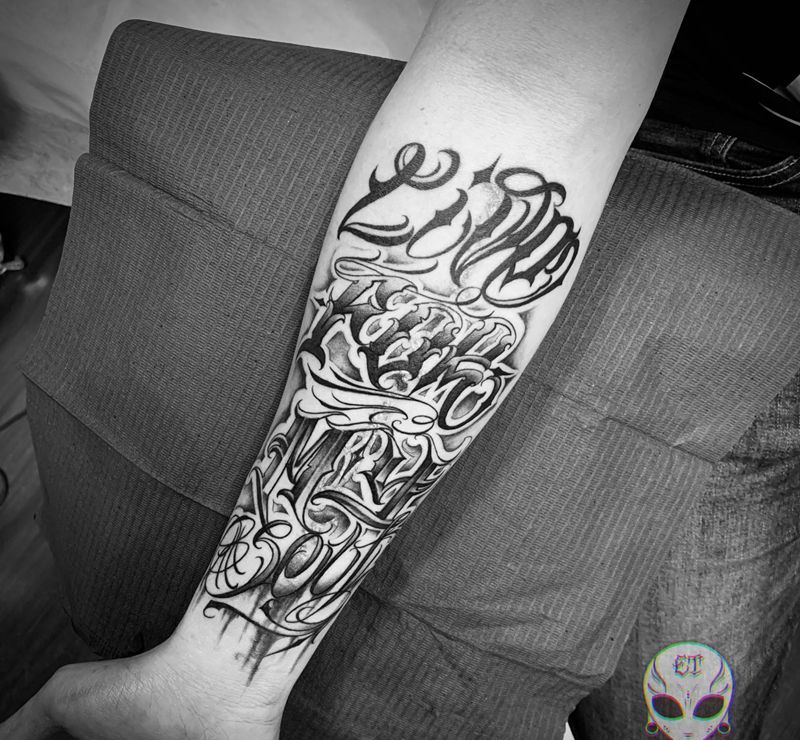 当前位置: 首页 >广东省东莞市纹身店-ET TATTOO纹身图案>花体纹身图片_手臂花体字纹身图案