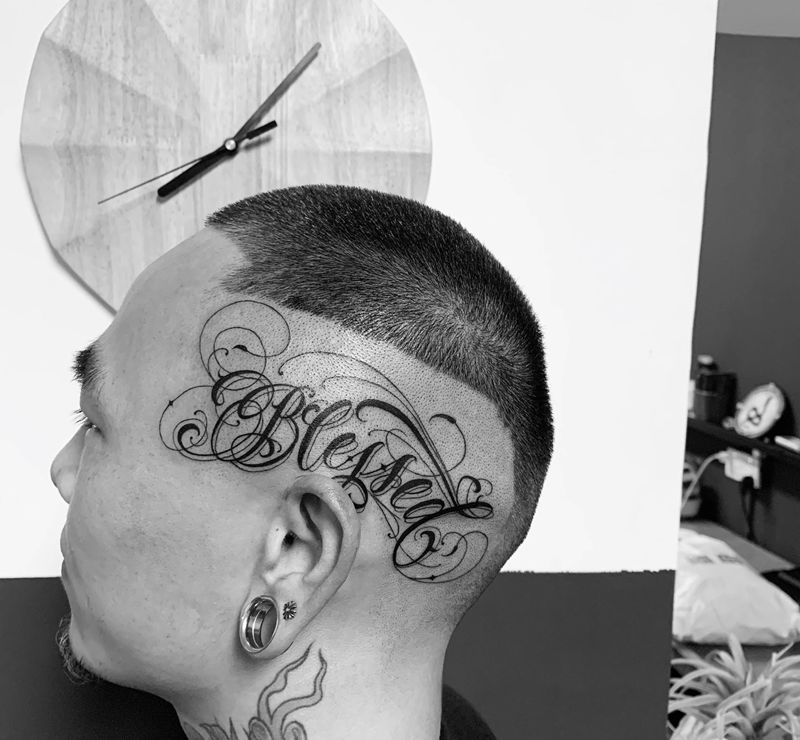 当前位置: 首页 >广东省东莞市纹身店-ET TATTOO纹身图案>头部花体纹身图片_花体字纹身图案