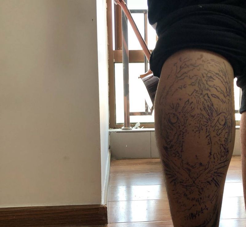 • T网红王老大花腿龙纹身图片_腿部新传统纹身图案