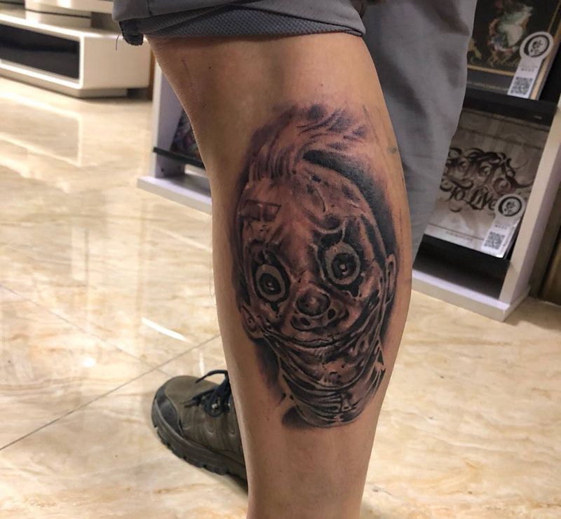 • T包小腿吹火男+阿多福纹身图片_腿部老传统新传统吹火男阿