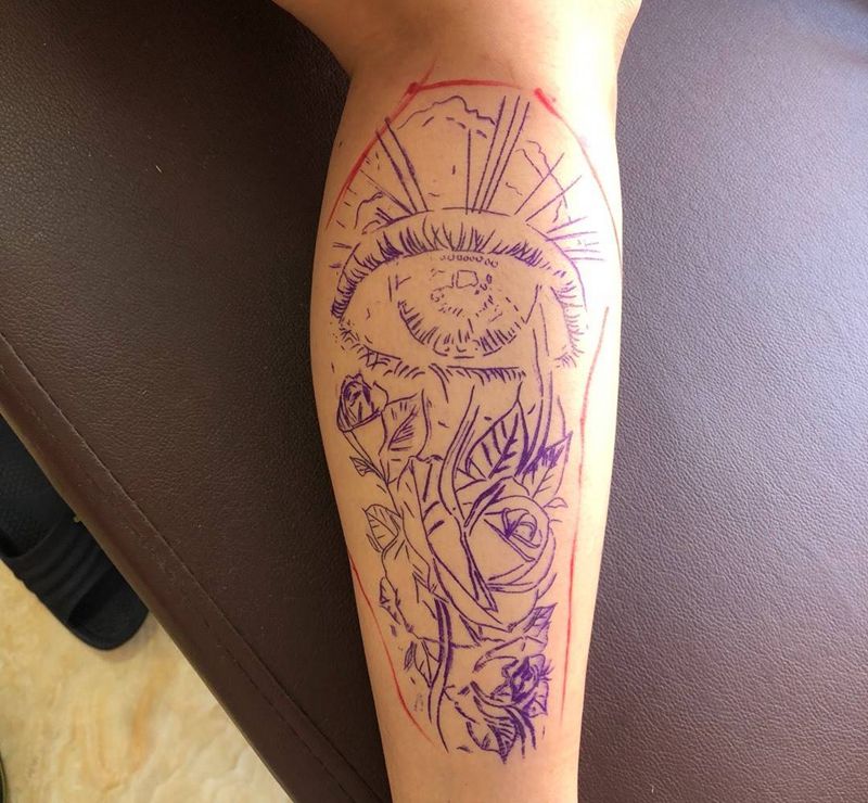 • 手背潮流时尚的玫瑰花眼睛纹身图案
