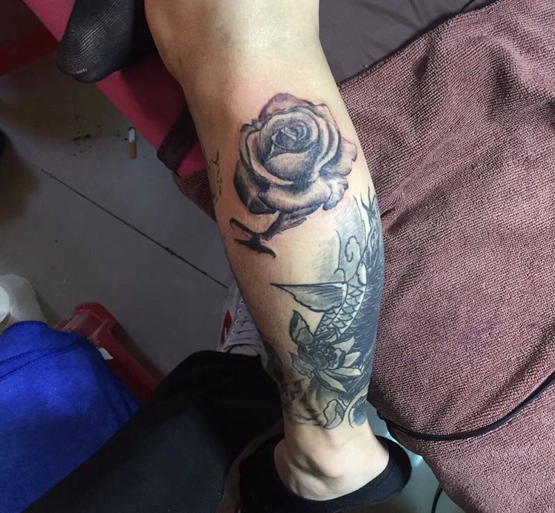 • T网红王老大花腿龙纹身图片_腿部新传统纹身图案
