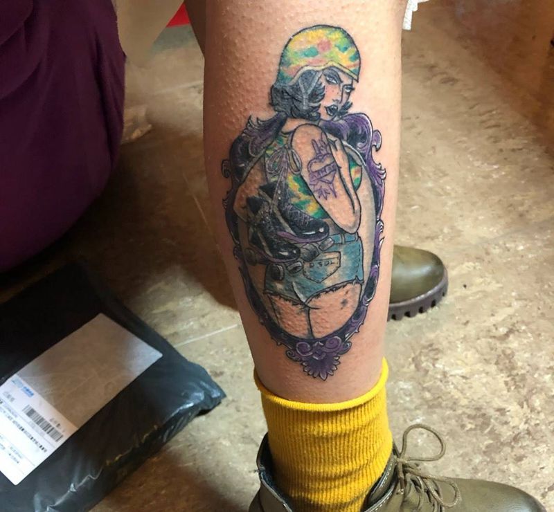 • T包小腿吹火男+阿多福纹身图片_腿部老传统新传统吹火男阿