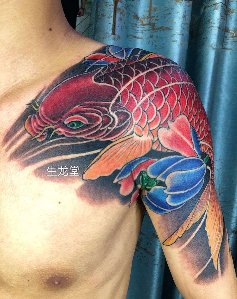 过肩鱼纹身图片_肩部手臂新传统纹身图案