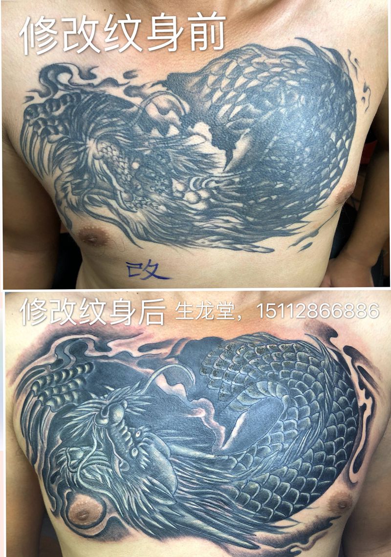 当前位置: 首页 >广东省东莞市纹身店-生龙堂刺青纹身图案>覆盖作品纹身图片_胸部新传统纹身图案