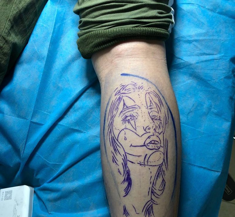 • T包小腿吹火男+阿多福纹身图片_腿部老传统新传统吹火男阿