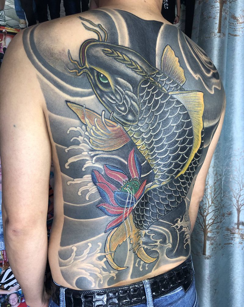 当前位置: 首页 >广东省东莞市纹身店-生龙堂刺青纹身图案>满背鱼修改纹身图片_背部新传统纹身图案
