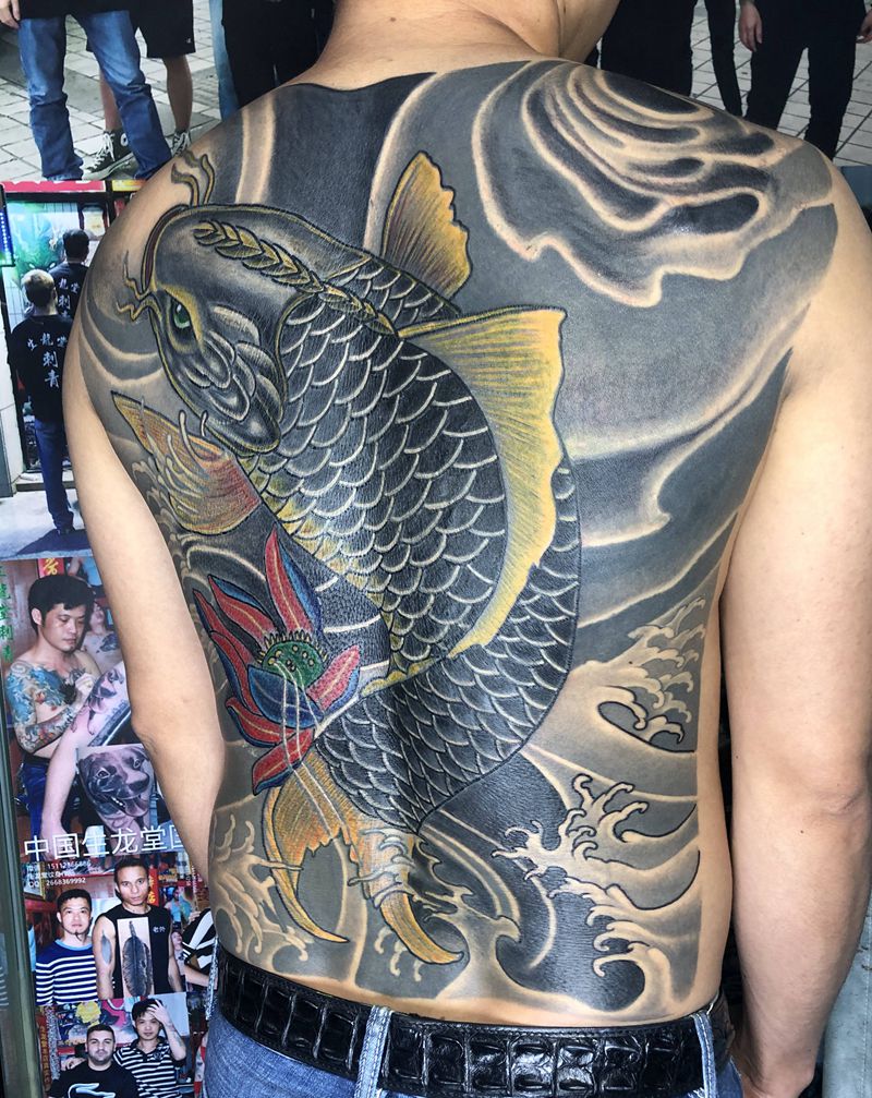 当前位置: 首页 >广东省东莞市纹身店-生龙堂刺青纹身图案>满背鱼修改纹身图片_背部新传统纹身图案