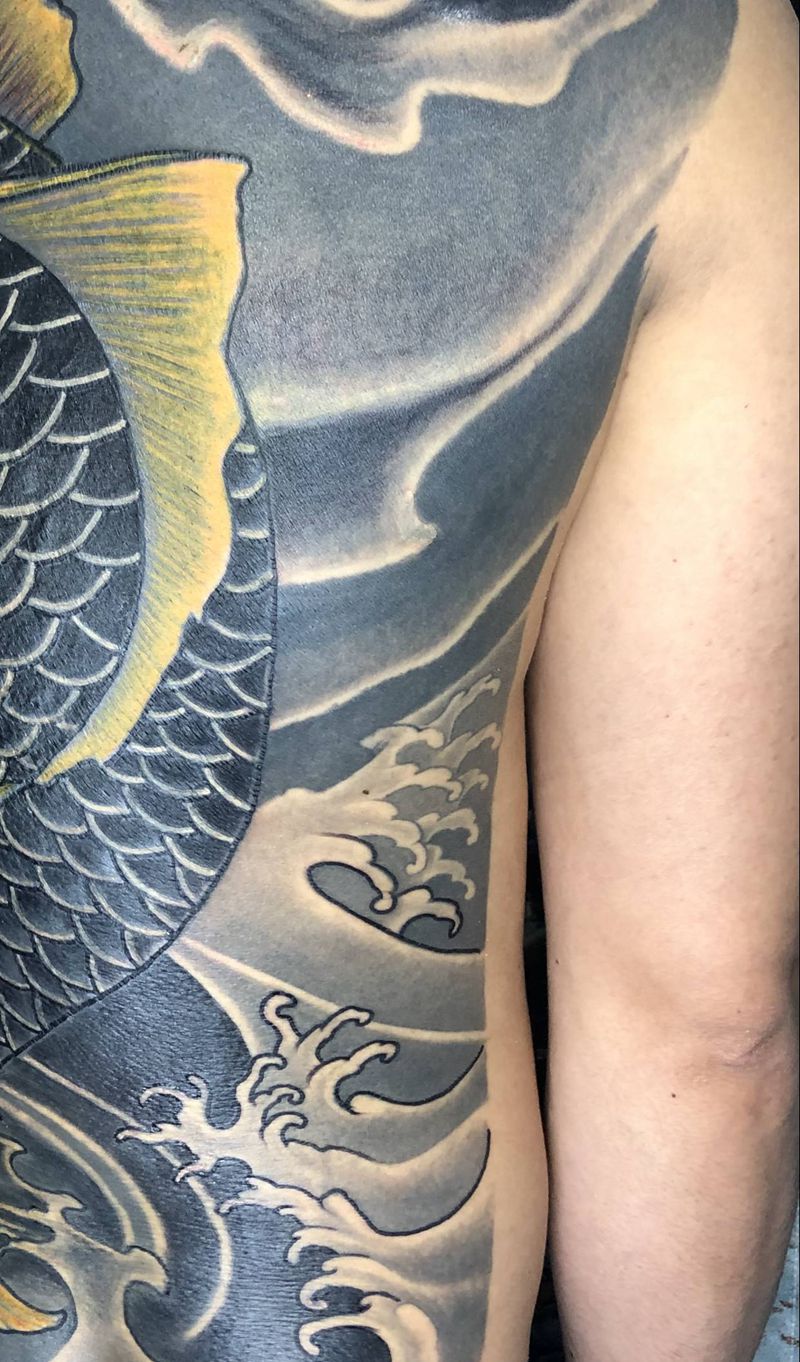 当前位置: 首页 >广东省东莞市纹身店-生龙堂刺青纹身图案>满背鱼修改纹身图片_背部新传统纹身图案