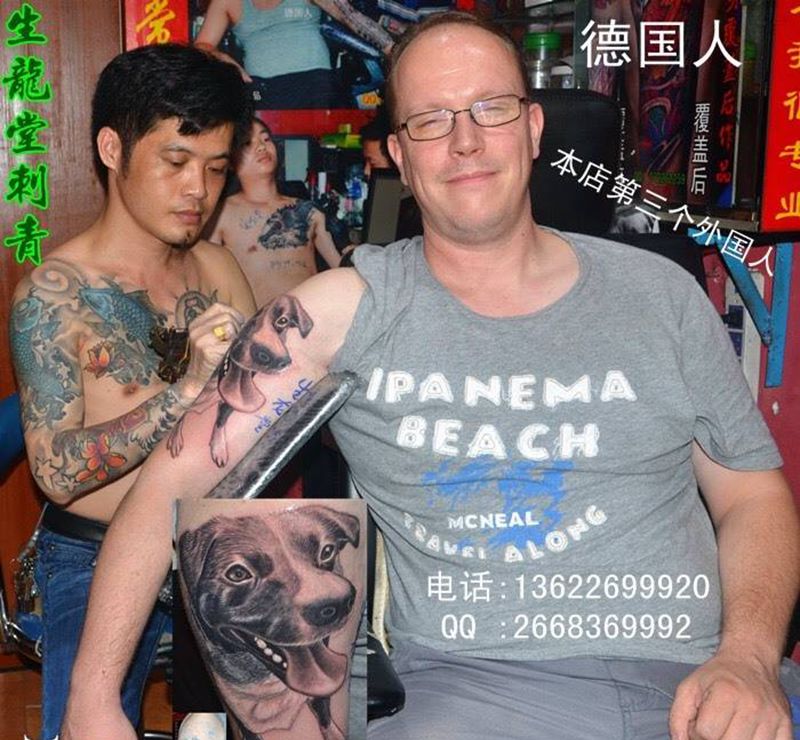 当前位置: 首页 >广东省东莞市纹身店-生龙堂刺青纹身图案>德国人纹狗狗纹身图片_狗图手臂成品写实动物东莞生龙堂纹身图案