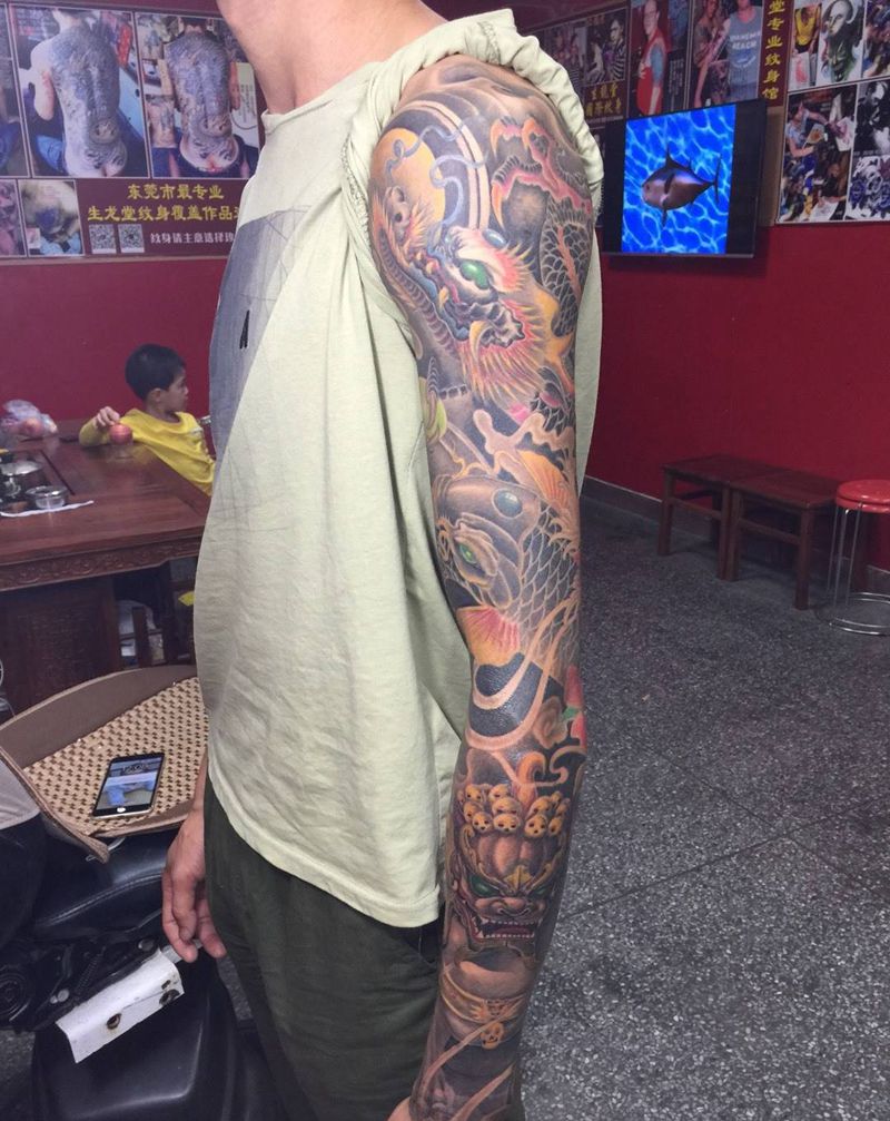 生龙堂,花臂,作品纹身图片_成品手臂肩部手部传统动物东莞纹身图案