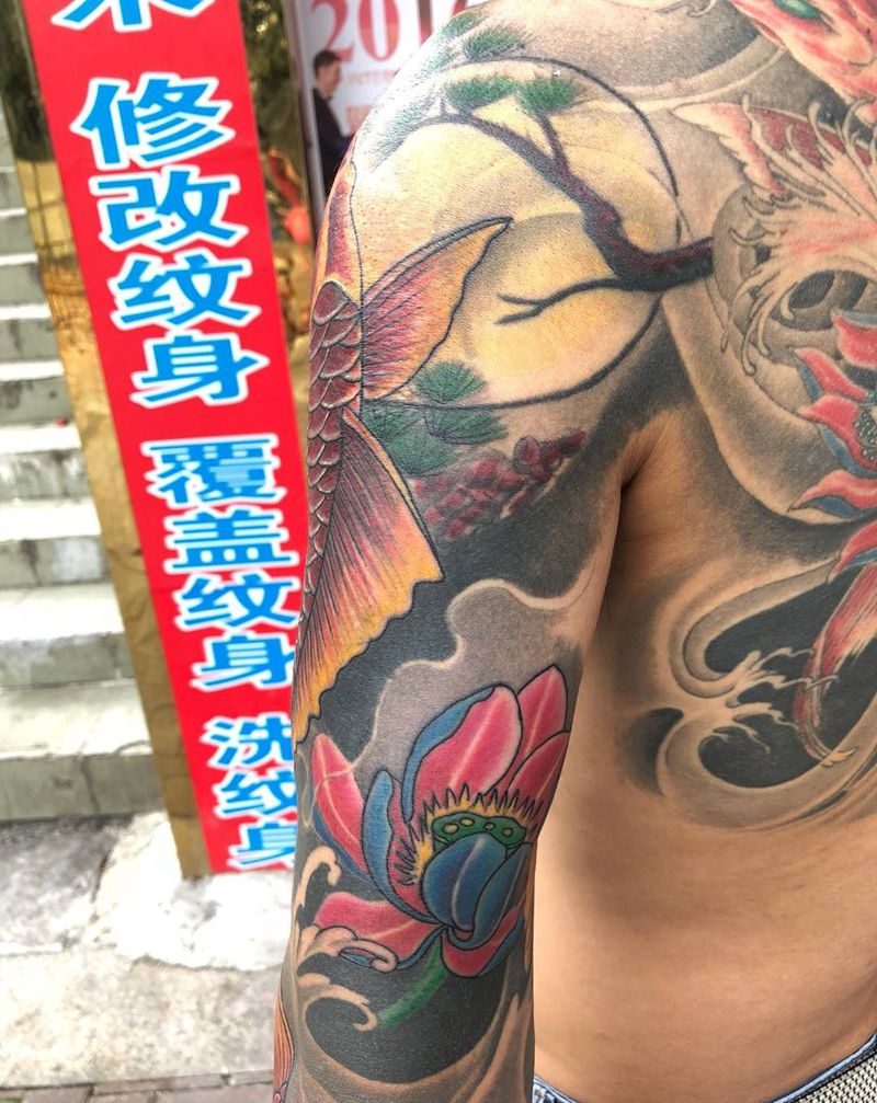 当前位置: 首页 >广东省东莞市纹身店-生龙堂刺青纹身图案>花臂鱼纹身图片_东莞生龙堂微信:15112866886学包会常年招生成品手臂传统动物纹身图案